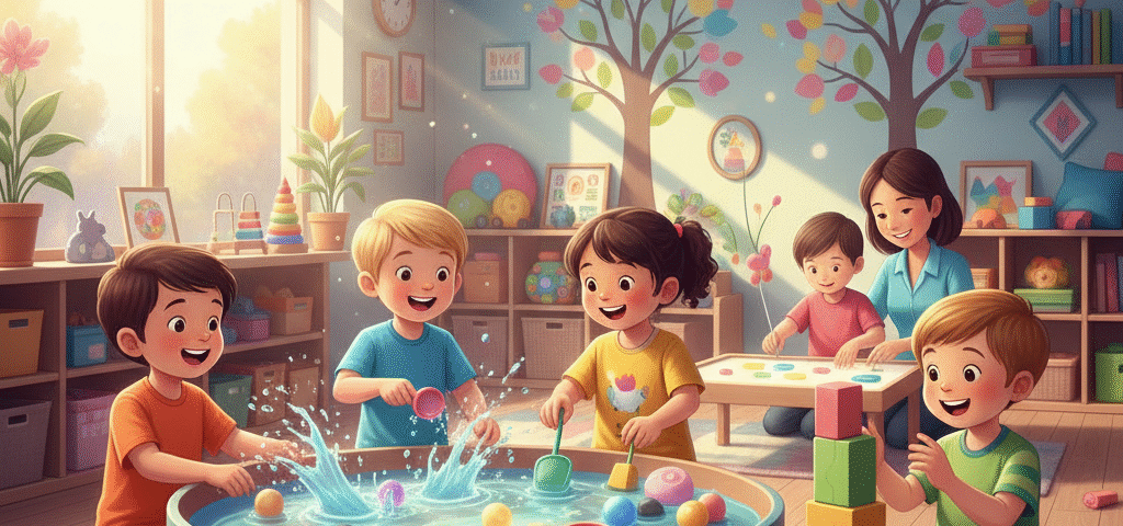 - الأنشطة الحركية: مثل التسلق، التأرجح، والقفز، لتعزيز الوعي الجسدي والتوازن.